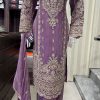 Elevate your wardrobe with this stunning fancy embroidered suit, exquisitely crafted from luxurious chiffon material. The intricate gold embroidery adds a touch of elegance, while the matching palazzo ensures a flattering silhouette. Complete with an embroidered chiffon dupatta adorned with delicate stone embellishments, this ensemble is perfect for any festive occasion or special event. Embrace sophistication and style with this captivating outfit that promises to make you the center of attention. available in 4 colours